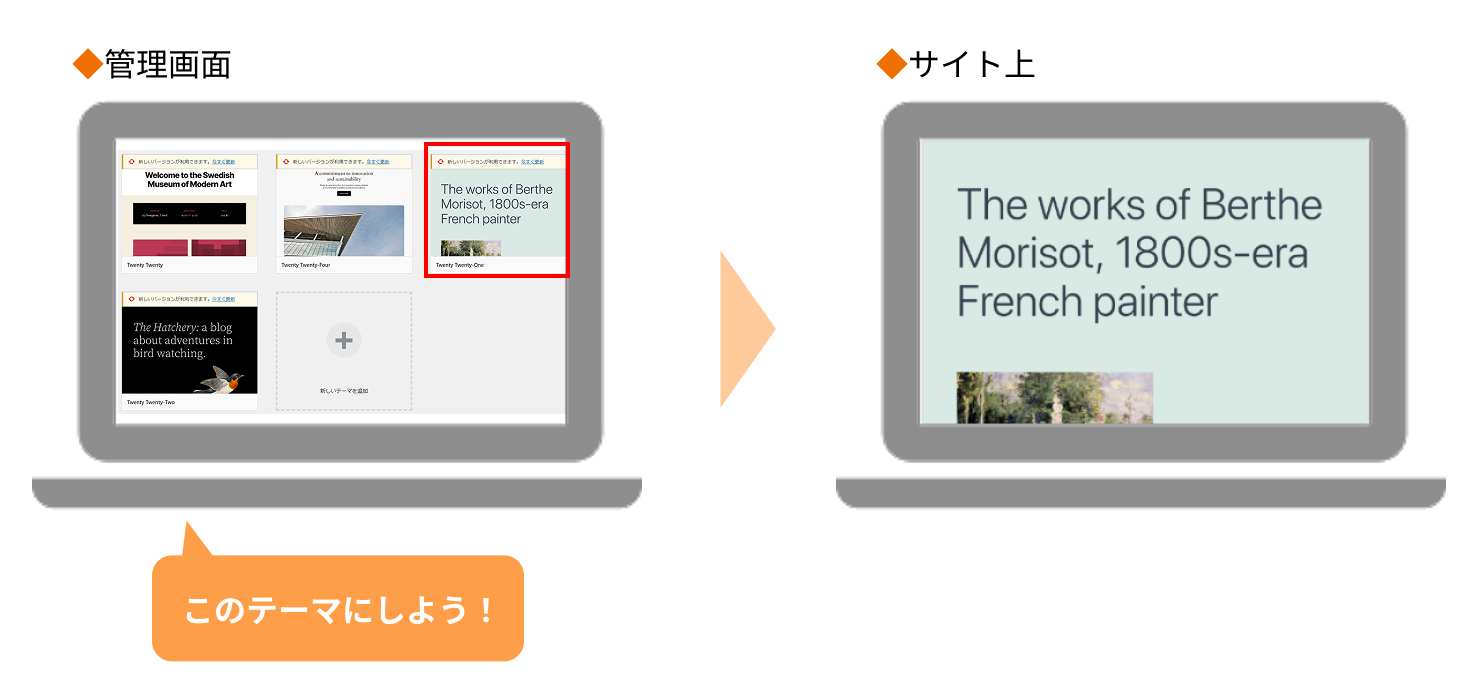 テンプレートで用意されているテーマをクリックするだけで簡単におしゃれなデザインに変えられます!